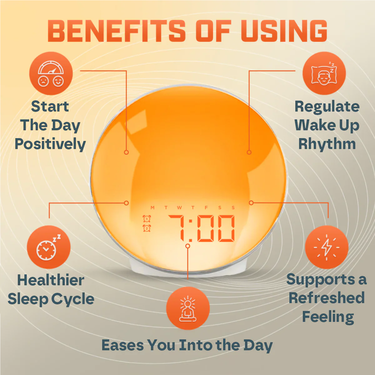 Wake up gently with the Smart Wake-Up Alarm Clock. Designed with sunrise-style lighting, customisable sound options, and smart home compatibility, it brings comfort and control to your morning routine. Use the app to personalise your settings and start each day your way.
